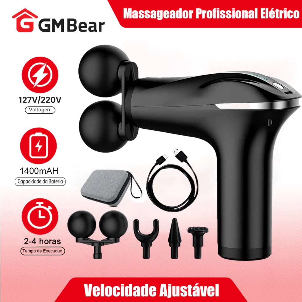 Pistola Massageadora Profissional GM Bear – 6 Velocidades e Alta Frequência