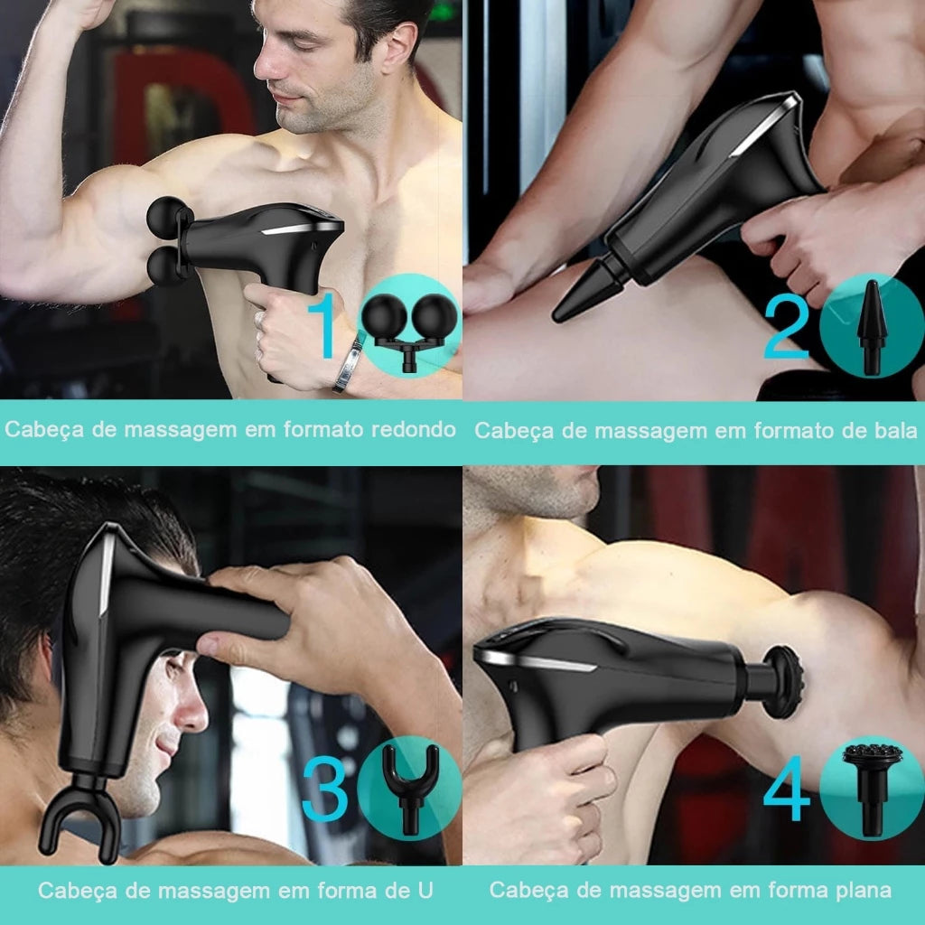 Com 6 níveis de velocidade ajustáveis, você pode personalizar a intensidade da massagem conforme sua necessidade — desde um relaxamento leve até uma liberação muscular mais profunda. O aparelho acompanha 4 cabeças de massagem intercambiáveis, projetadas para atingir diferentes grupos musculares com precisão.