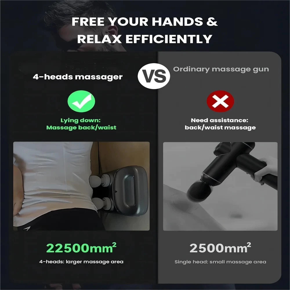 Pistola de Massagem Portátil Sem Fio – 4 Pontas de Percussão